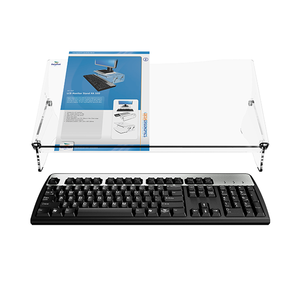 Der Easy Konzepthalter Transparent wird zwischen Tastatur und Bildschirm platziert. Dadurch nehmen Sie automatisch eine korrekte Haltung an und der Sichtabstand zu den Vorlagen wird verringert.